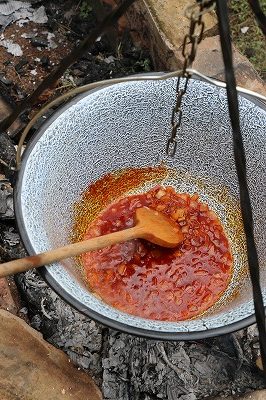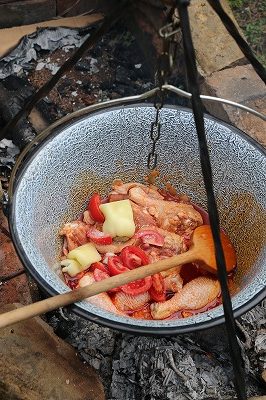何時もは勿論キッチンで作りますが、今日は特別に野外で作りました。ハンガリーの主要民族であったマジャール人は遊牧民族だったので、昔ながらのやり方で料理する、と言えば遊牧民が昔暮らしていたように外で大きな鍋を使って調理する事を言います。