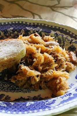 ※発酵キャベツは日本人の味覚には多分「酸っぱすぎる」と思います。私も初めはあの鼻にツンとくる強烈さが苦手でした。だから酸っぱさに弱い人は発酵キャベツの量を減らし、千切りにした生のキャベツを加える方が良いと思います。