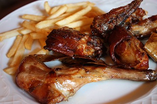 メインディッシュはセグンド・プラート、第二の皿と呼ばれます。豚肉、鶏肉、魚やイカなどを調理したものが多いです。付け合わせにポテトフライやサラダが付くので、前菜はサラダを選ばない方が色々試せて楽しいかも。