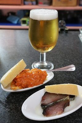 ポテトフライにピリ辛ソースをかけた料理がパタタス・ブラバス(Patatas bravas)。大好きな料理ですが、最悪な場所だとケチャップにタバスコを混ぜただけの酷い代物が出てきます。当り外れの振り幅がメチャクチャに大きい料理。