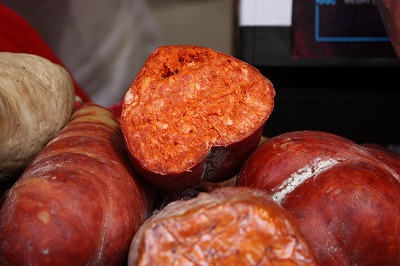 丸くて大きいのですが、量り売りなので自分の好きな分量だけカットしてもらいます。味の違いはミルクの違い。牛→羊→ヤギの順番でクセが強くなります。食感の違いは熟成度の違い。古ければ古い程固く、高価なチーズとなります。
