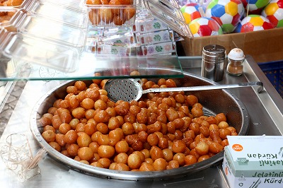 揚げドーナツを甘いシロップに漬け込んだ極甘のお菓子が、ルクマデス (Loukoumades) 。何もそこまで甘くしなくても・・・と辟易する甘いです。慣れれば美味しいんだろうけれど慣れたくない。ギリシャ人は朝ごはんとして食べます。