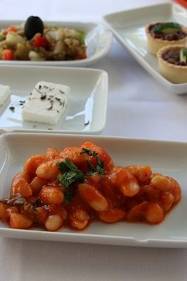 大きな白インゲン豆をトマトソースで煮込んだ料理がGigandes plaki。少しスパイシーな味がします。前菜で食べる場合は冷たく、冬はアツアツを食べます。(γίγαντες πλακί)
