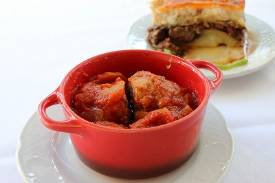 ギリシャ風ミートボールをケフテス (Keftethes) と呼びます。普通に美味しいのですが、ギリシャ料理は前菜にある肉を使わないトマトやズッキーニのケフテスが豊富で美味しいので、私だったらそちらをメインに食べます。