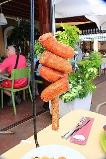 レストランでは「Drei im Weggla(ドライ・イム・ヴェックラ)」と注文してください。パン(ヴェックラ)に3本のソーセージを挟んだ、ニュルンベルク定番のストリートフードが出てきます。