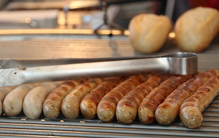 ドイツの屋台料理の定番がブラート・ヴルスト (Bratwurst) と呼ばれる 、鉄板や網で焼いたソーセージ。その中でも一番ポピュラーな焼きソーセージが、テューリンガー (Thüringer Rostbratwurst) です。