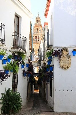 コルドバの旧市街は何処も趣があって素敵なのですが、特に人気があるのがユダヤ人街。その中にある花の小道と呼ばれる袋小路は、コルドバ一番のインスタ映えスポットです。春に訪れると鉢植えの花が美しく、メスキータの塔との最高に素敵なコンビネーションを楽しめます。