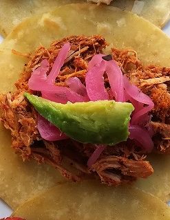 豚肉をアチオーテ(Achiote)と呼ばれるベニノキの実、酢、パイナップル果汁、唐辛子などに漬け込み、バナナの葉に包んで石蒸しにした料理がコチニータ・ピビル (Cochinita pibil)。ユカタン地方の伝統料理です。
