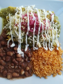 油で揚げたトウモロコシのトルティーヤに、緑や赤のソースやモーレをかけて煮込んだ料理がチラキレス (Chilaquiles) 。固くなったトルティーヤと余ったサルサをリサイクルした料理です。メキシコでは夕食で残ったトルティーヤをチラキレスにして、朝ごはんや昼ごはんとして食べる家庭が多いです。