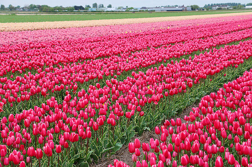 公園ではなく、本物の広大なチューリップ畑(生産農家の畑)を見たいのならオランダ北部を訪れましょう。特にザイプ (Zijpe) 周辺が有名で、世界最大規模のチューリップ畑が地平線まで広がります。ここは公共の交通機関がほぼないため、レンタカーが必須となります。