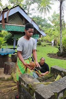 サモアは肝っ玉母さん系が多い国。女性は早婚で子沢山。しつけは厳しく、家事を厳密に割り当てます。サモアは水や電気が通っていない村も多く、子ども達は水を汲みに何度も家と水くみ場を往復します。
