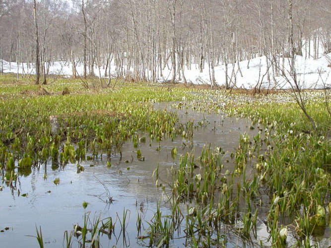神秘の森に咲く白の妖精:奥裾花自然公園の水芭蕉(長野県)